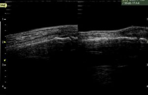 小指の超音波画像で、左が患側、右が健側です。